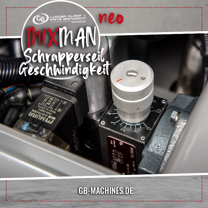 Das Mischwerk wird über einen robusten Knopf an der Steuerung manuell zugeschaltet. Dieses erhöht die Sicherheit des neuen MIXMAN NEO erheblich und bietet dem Benutzer immer die volle Kontrolle über die Maschine.